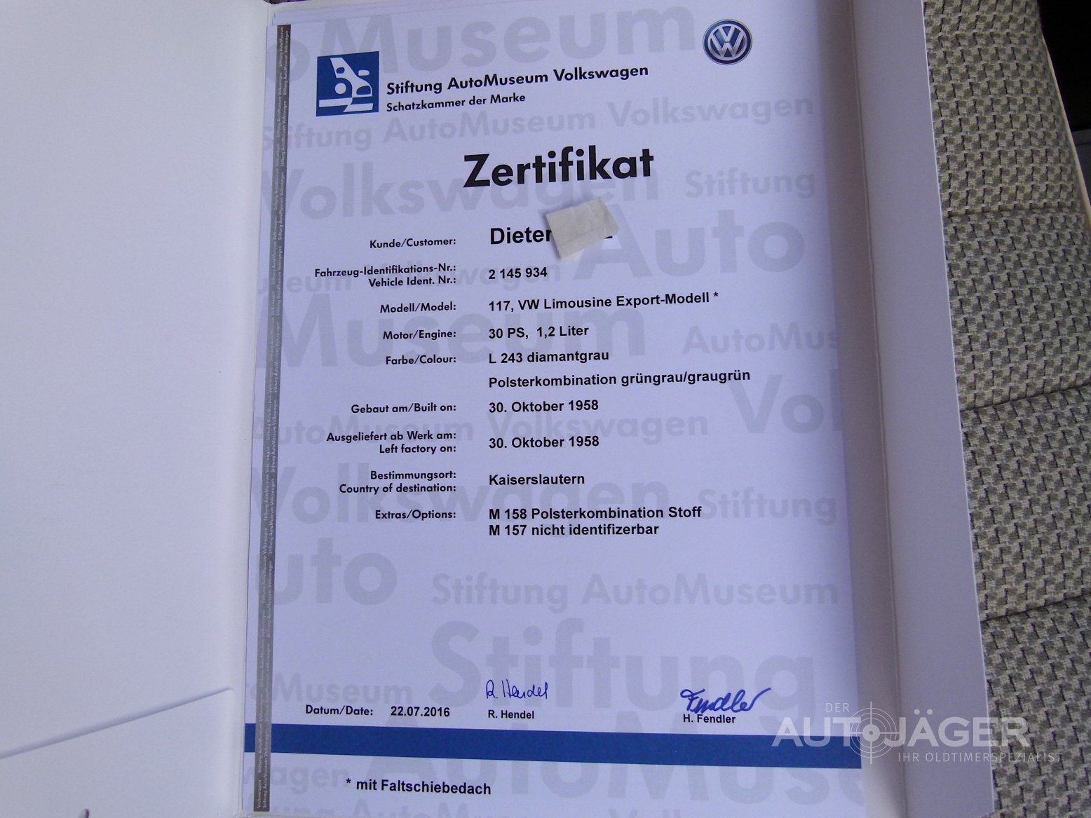 VW Käfer Typ 1 Export mit Faltschiebedach