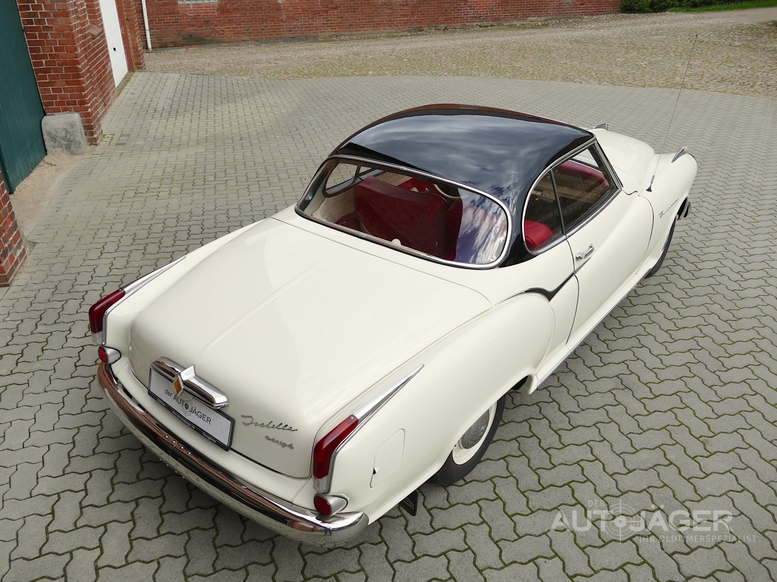 Zum Verkauf steht ein erstklassiges Borgward Isabella Coupé aus dem Jahr 1958. Das Fahrzeug wurde von mir im Jahr 2016 aus Schweden importiert und an den jetzigen Besitzer verkauft. Er investierte in den letzten 8 Jahren ca. 25.000.- € in die Isabella und fuhr den Wagen ausschließlich zu ausgewählten Anlässen und nur bei gutem Wetter. Die Karosserie ist sehr gut erhalten und auch der Unterboden präsentiert sich erstklassig. Der Motor wurde revidiert und diverse Verschleißteile erneuert. Dazu sind alle Rechnungen von Fachbetrieben sowie Fotos zur Dokumentation vorhanden. Das Interieur ist ebenfalls nahezu makellos und toll im Zustand. Als Mangel wären eigentlich nur die Radkappen sowie eine Zierleiste zu erwähnen. Diese könnten einmal neu verchromt werden. Die Stoßstangen sowie der gesamte, weitere Zierrat ist ebenfalls makellos. Ein wunderschönes und richtig gutes Auto zu einem sehr fairen Preis zum einsteigen und losfahren.