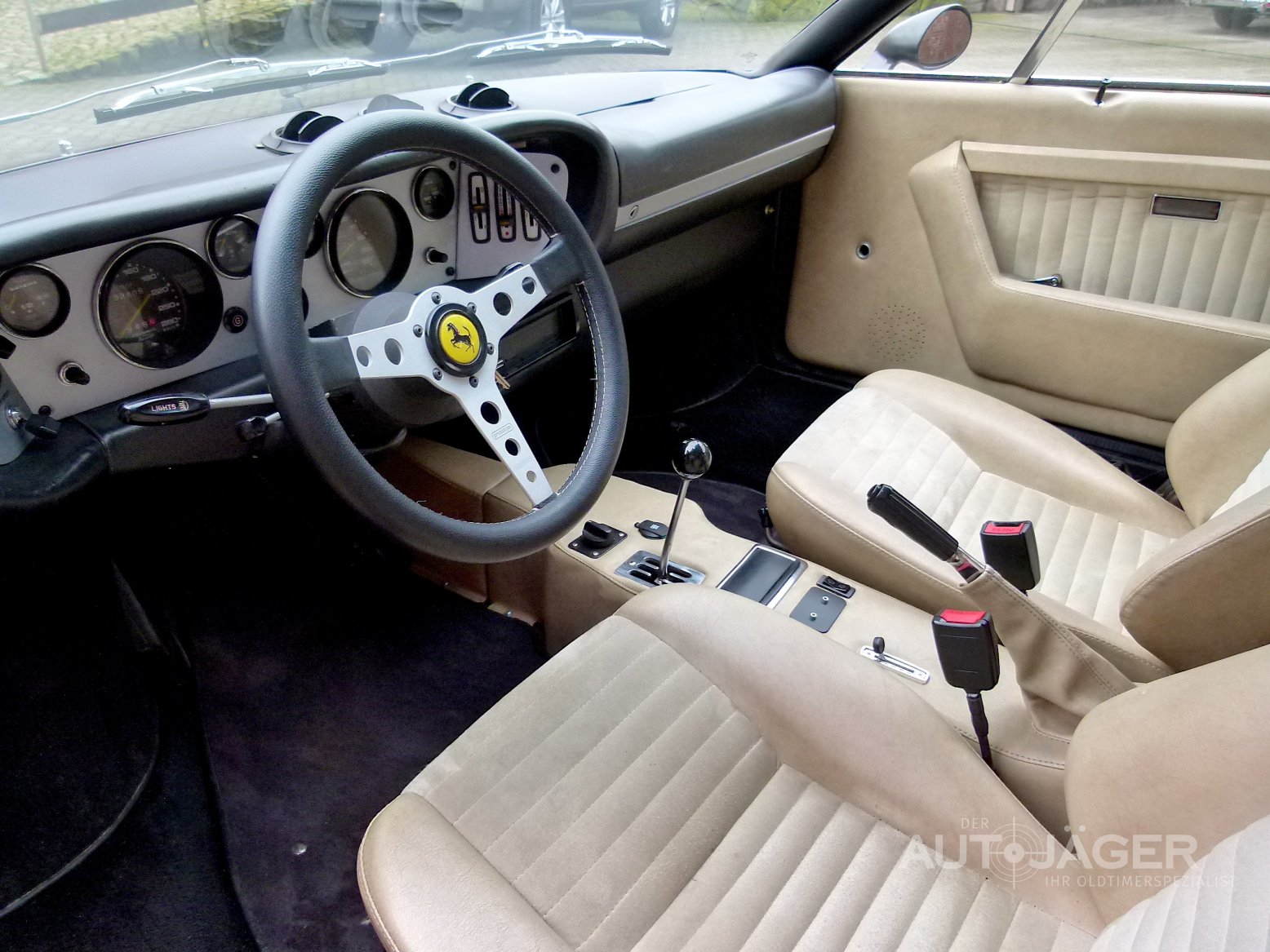 Zum Verkauf steht ein erstklassiger Ferrari 308 GT4 Dino in Marone braun metallic. Das Fahrzeug wurde im Jahr 1977 in Frankreich erstmals zugelassen. Es handelt sich um ein absolut gepflegtes und erstklassiges Auto mit komplett revidierter Technik. Es sind sämtliche Unterlagen mit Werkstattrechnungen von damals bis heute vorhanden. Der Motor wurde 2002 für 32.000.- € revidiert und erneut im Jahr 2017 überarbeitet und perfektioniert. Das Fahrwerk sowie die kompletten Bremsen wurde ebenfalls kürzlich erneuert. Das Auto läuft kraftvoll, perfekt und zuverlässig. Die Karosserie ist absolut gerade und rostfrei. Die Lackierung ist makellos und das Interieur ist sehr gut erhalten. Der Ferrari steht auf überholten und originalen Magnesium- Felgen mit guter Michelin XWX Bereifung. Es existieren mehrere Wertgutachten und das neuste aus 2020 mit einer Zustandsnote 2+ und einem Wert von 120.000.- €. Ein wunderschöner und richtig guter Ferrari zum fahren, pflegen und wegstellen.