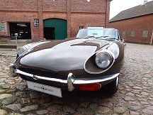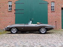 Zum Verkauf steht ein sehr gut gepflegter und wunderschöner Jaguar E- Type 4,2 Liter Roadster. Das Auto befindet sich in einem sehr guten original Zustand mit der ersten Lederausstattung. Die Karosserie ist perfekt erhalten und Rost ist kein Thema. Das Fahrzeug war die letzten 14 Jahre in einem Besitz. Es existiert ein Ordner mit sämtlichen Rechnungen sowie kompletter Historie. Der Zylinderkopf wurde auf bleifreien Kraftstoff umgerüstet und komplett überholt. Das gesamte Fahrzeug wurde mit Mike Sanders hohlraumkonserviert. Der Unterboden wurde mit Trockeneis gestrahlt. Die Farbkombination inkl. neuwertigem, braunen Softtop ist sehr elegant und absolut selten. Der Jaguar läuft perfekt und ist auch für lange Strecken sofort einsatzbereit. Es handelt sich hier um ein sehr gutes Fahrzeug mit einer sehr zuverlässigen und durchgehend gewarteten Technik. Der E- Type steht auf makellosen Speichenfelgen mit Zentralverschlüssen und sehr guter Bereifung. Das Auto besitzt das H- Kennzeichen und Tüv bis Juli 2016 und ist sofort abholbereit. Für weitere Fragen oder einen Besichtigungstermin rufen Sie mich gerne an. Das Fahrzeug wird im Kundenauftrag angeboten und ist nach Terminabsprache bei Hamburg zu besichtigen. Irrtümer und Zwischenverkauf vorbehalten.