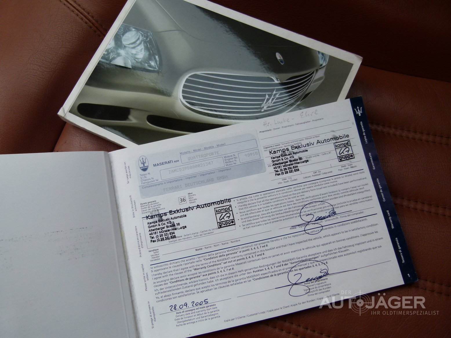 Wunderschöne Limousine aus dem Hause Maserati mit nahezu voller Ausstattung. Das Auto wurde im September 2005 vom Maserati- Vertragshändler in Deutschland an den Erstbesitzer ausgeliefert. Dieser fuhr das Auto 2 Jahre und gab es bei Maserati wieder in Zahlung. Seit 2007 ist das Fahrzeug im Zweitbesitz und wurde lückenlos Scheckheft gepflegt. Bei 79.000 Km wurde der letzte Ölwechsel durchgeführt. Bei 66.200 Km wurde im Jahr 2013 die Kupplung erneuert. Der Quattroporte fährt sich sehr gut und alles funktioniert wie es soll. Das Auto hat keinen Wartungsstau und Tüv bis 10/2018. Für weitere Informationen oder einen Besichtigungstermin rufen Sie mich gerne an. Das Fahrzeug wird im Kundenauftrag angeboten und ist nach Terminabsprache bei Hamburg zu besichtigen. Irrtümer und Zwischenverkauf vorbehalten. Diese Fahrzeugbeschreibung gilt nicht als zugesicherte Eigenschaft. Achtung: Standort aller Fahrzeuge an der Autobahn 1, Ausfahrt Bad Oldesloe. Terminabsprache erforderlich.