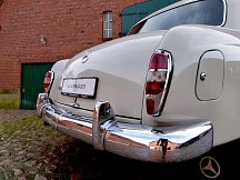 Zum Verkauf steht ein sehr schöner Mercedes Benz 180c Ponton aus dem Jahr 1962 in einem super Erhaltungszustand. Das Auto befindet sich seit 22 Jahren in letztem Besitz und es wurde immer alles notwendige erledigt. Der Wagen hat eine gut erhaltene Karosserie und ein absolut originales Interieur mit sehr wenigen Gebrauchsspuren für 60 Jahre. Es sind die ersten Sitze und der erste original Wollhimmel im Auto. Alles ist bis auf eine Beschädigung am Einstieg des Fahrersitzes super erhalten. Das Auto ist überwiegend in der Werkslackierung natürlich mit etwas Patina der Jahre. Die Technik wurde immer gewartet und der Ponton fährt sich sehr gut. Der Motor läuft sauber ohne Rauch, das Getriebe schaltet sich exakt. Es ist ein Ordner mit sämtlichen Rechnungen, Tüvberichten mit Kilometerständen sowie der Neuwagenrechnung aus 1962 vorhanden. Der Mercedes wurde als Neuwagen nach Schweden geliefert und sofort Hohlraum- konserviert. Damals wurde in Schweden im Winter kein Salz gestreut, was den Zustand der Karosserie widerspiegelt.