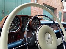 Zum Verkauf steht ein wunderschönes Mercedes Benz 220 SE Coupe aus dem Jahr 1963 in mittelblau. Das Auto war 36 Jahre in einem Besitz und ist in einem erstklassigen Originalzustand. Der Mann erwarb das Auto 1983 aus erster Hand aus Turin in Italien. Bis dahin hatte das Auto niemals Salz gesehen und die Karosserie ist vermutlich ungeschweißt. Der Unterboden ist komplett original erhalten und die Spaltmaße des Autos sind perfekt. Er fuhr das Auto sporadisch bei schönem Wetter und die Gesamtlaufleistung von 161.832 Km ist original und durch sämtliche Tüvbelege nachvollziehbar. Das Interieur ist im ersten original Leder mit charmanter Patina. Das Holz ist super erhalten und alles funktioniert perfekt. Das Auto läuft sehr schön und seidenweich und steht auf original Michelin-Bereifung. Der Chrom ist wie der gesamte Wagen in sehr gutem Zustand. Die Bordmappe mit allen Papieren ist im Handschuhfach. Die letzten 6 Jahre ist das Coupe im Besitz eines renommierten Arztes aus Hamburg.