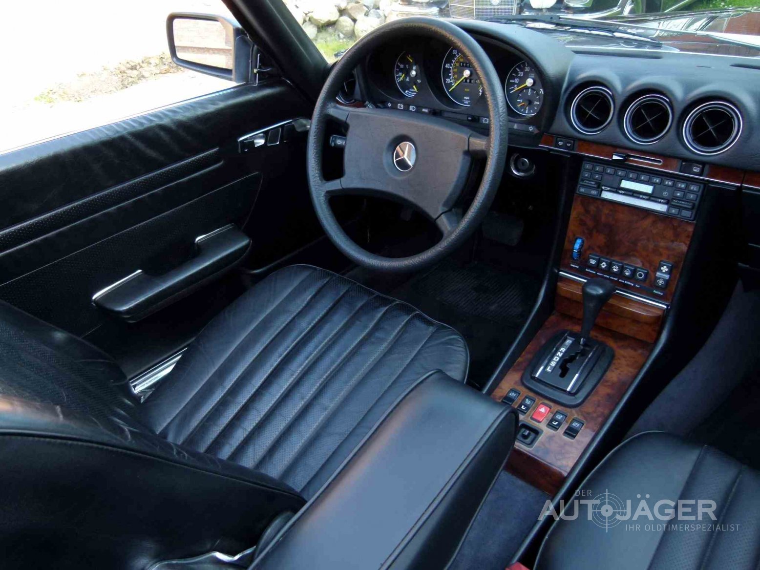 Sehr schöner Mercedes 280 SL in original 040 schwarz mit fast allen Extras. Das Auto ist mit Lederinterieur, Sitzheizung, Klimaautomatik, elektrische Fensterheber, Tempomat, Sitzbank im Fond und original Beckerradio ausgestattet. Der SL hatte nur einen Besitzer und wurde 1984 in Santa Fe in Californien als Neuwagen ausgeliefert. Durch das trockene Klima ist Rost bei dem Fahrzeug absolut kein Thema und der Unterboden ist perfekt. Alle Rechnungen von 1984 bis heute mit Kilometerständen sind vorhanden und die Bordmappe liegt im Handschuhfach. Das Verdeck ist neu und das original Hardtop gehört ebenfalls zum Fahrzeug. Die Klimaanlage kühlt und der Tempomat funktioniert. Der Auspuff sowie die Reifen sind ebenfalls neu. Der Lack sowie der Chrom sind im guten Zustand und das Auto wurde stets gepflegt. Das Fahrzeug besitzt einen geregelten Katalysator und bekommt die grüne Feinstaubplakette. Im nächsten Jahr bekommt der SL das historische Kennzeichen. Für weitere Fragen rufen Sie mich gerne an und vereinbaren einen Besichtigungstermin. Der Mercedes wird im Kundenauftrag angeboten und ist nach Terminabsprache bei Hamburg zu besichtigen. Irrtümer und Zwischenverkauf vorbehalten.