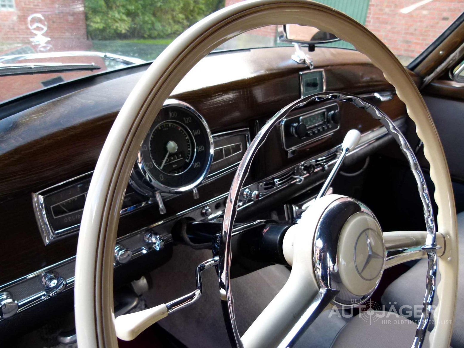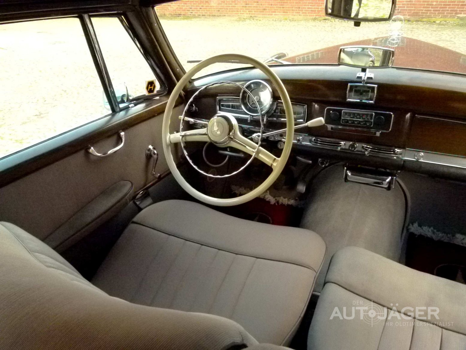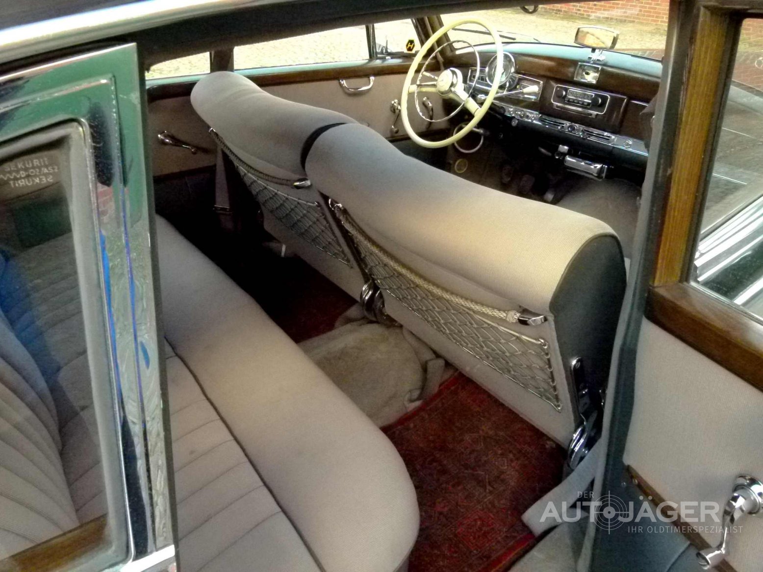 Auch heute versprüht der Mercedes Benz Adenauer noch viel Charme und steht für Wohlstand und soliden Automobilbau. Dieses Exemplar ist weitestgehend unrestauriert und das Interieur sowie das Holz tragen Patina der Jahre. Trotz dem wirkt der Innenraum nicht ungepflegt. Die Anzeigeinstrumente, das Radio mit elektrischer Hirschmann- Antenne und sogar die Uhr funktionieren perfekt. Die gesamte Technik an dem Fahrzeug wurde stets instand gehalten und der Adenauer gleitet fast geräuschlos dahin. Das Fahrwerk vermittelt einen sicheren Eindruck, die Reifen wurden vor nicht langer Zeit erneuert. Der Motor und das Getriebe arbeiten perfekt, die Hinterachse ist leise. Vor ca. 20 Jahren wurde der Mercedes im Zweifarbton lackiert. Die Lackierung zeigt jetzt deutliche Spuren der Jahre. So ist auf der Haube eine Beule und das Auto ist benutzt. Wer also einen Neuwagen erwartet ist hier falsch. Wenn Sie ein Adenauer erwarten, mit dem Sie sofort nach Hause fahren können, sollten Sie sich diesen einmal anschauen. Das Auto ist absolut zuverlässig und kann nach und nach verbessert werden. Oder Sie fahren Ihn einfach wie er ist. Das Auto kommt aus einem Sterbefall und war seit 1989 in einem Besitz. Für weitere Fragen stehe ich Ihnen gerne zur Verfügung. Für einen Besichtigungstermin rufen Sie mich bitte an. Das Auto wird im Kundenauftrag angeboten und ist nach Terminabsprache bei Hamburg zu besichtigen. Der Kilometerstand ist abgelesen. Irrtümer und Zwischenverkauf vorbehalten.