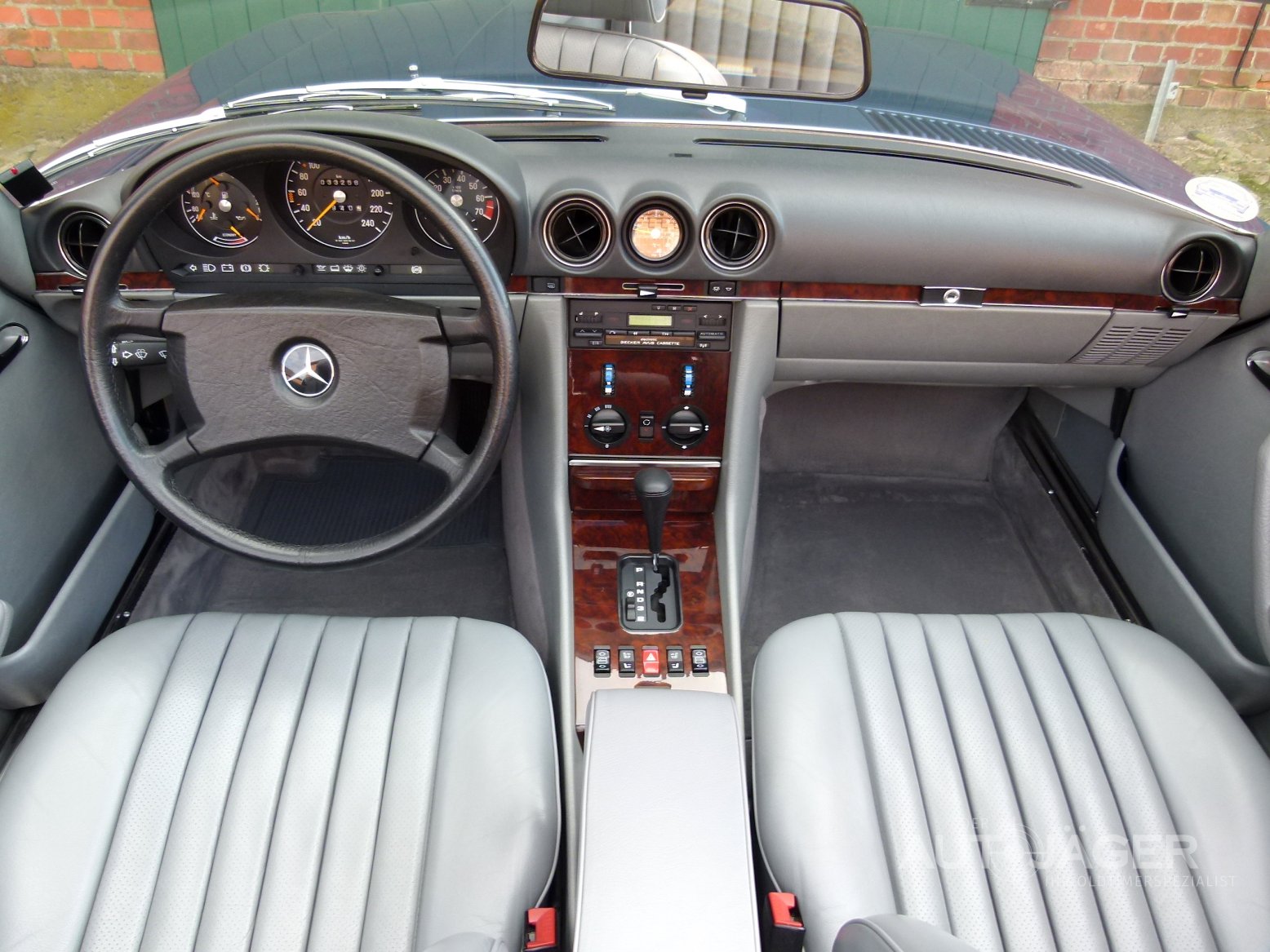Zum Verkauf steht ein erstklassiger und nahezu neuwertiger Mercedes Benz 300 SL R107 mit gerade einmal 33.258 Km. Das Auto wurde am 07.03.1989 in Stuttgart ausgeliefert und ging auf Kundenbestellung als Neuwagen nach Schweden an einen Mercedes Benz Vertragshändler. Das Fahrzeug wurde durchgehend und nur bei Mercedes Benz Scheckheft gepflegt. Die Bedienungsanleitung sowie das original Scheckheft mit Datenkarte sind im Handschuhfach. Dazu sind alle Tüvberichte mit Kilometerstand vorhanden. Die Lederausstattung und das gesamte Interieur ist ohne Gebrauchsspuren. Die Karosserie sowie alles Andere auch. Es gibt lediglich eine kleine Delle am Verdeckdeckel und etwas Staub am Unterboden. Das Verdeck ist wie neu und der Wagen fährt auch wie neu. Es ist sicherlich schwierig ein unverbrauchteres original Fahrzeug zu finden. Die Zustandsnote ist im Bereich 1 anzusiedeln. Da der Besitzer leider in der letzten Woche verstarb, sucht das Auto nun einen neuen Liebhaber. Vor Fahrzeugübergabe werden die Reifen erneuert und eine Tüvabnahme mit H- Kennzeichen durchgeführt.