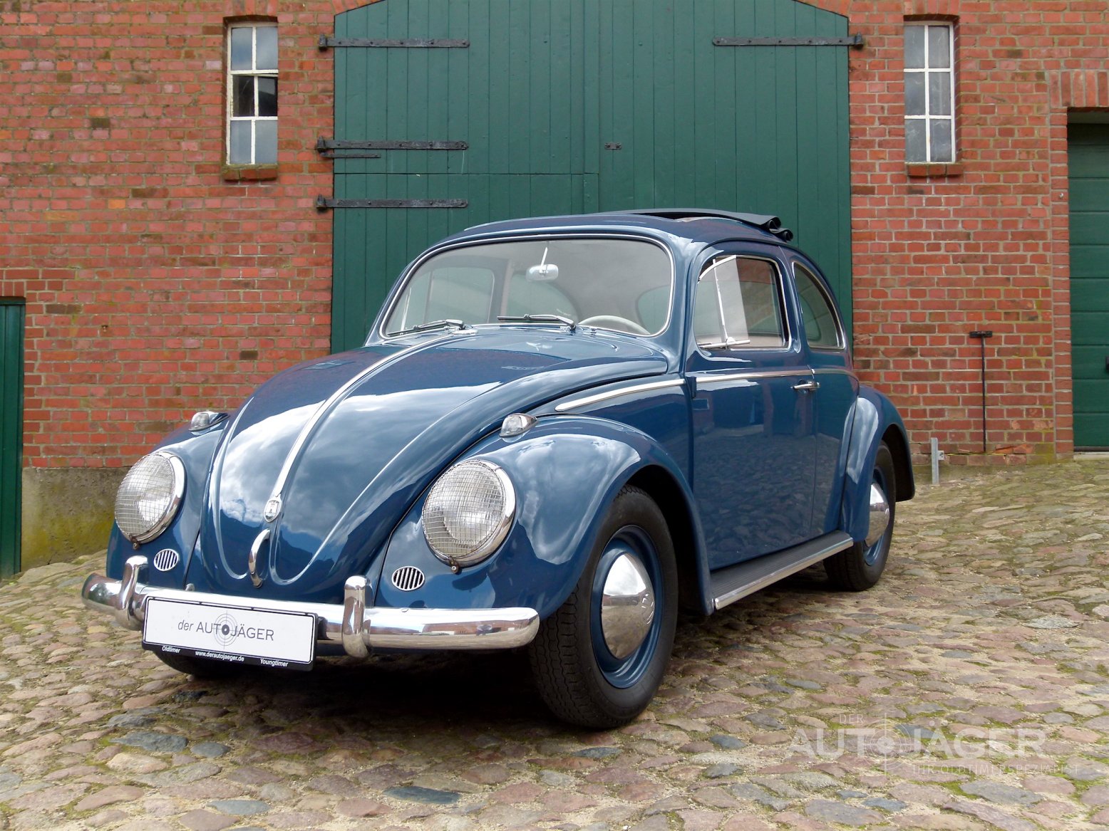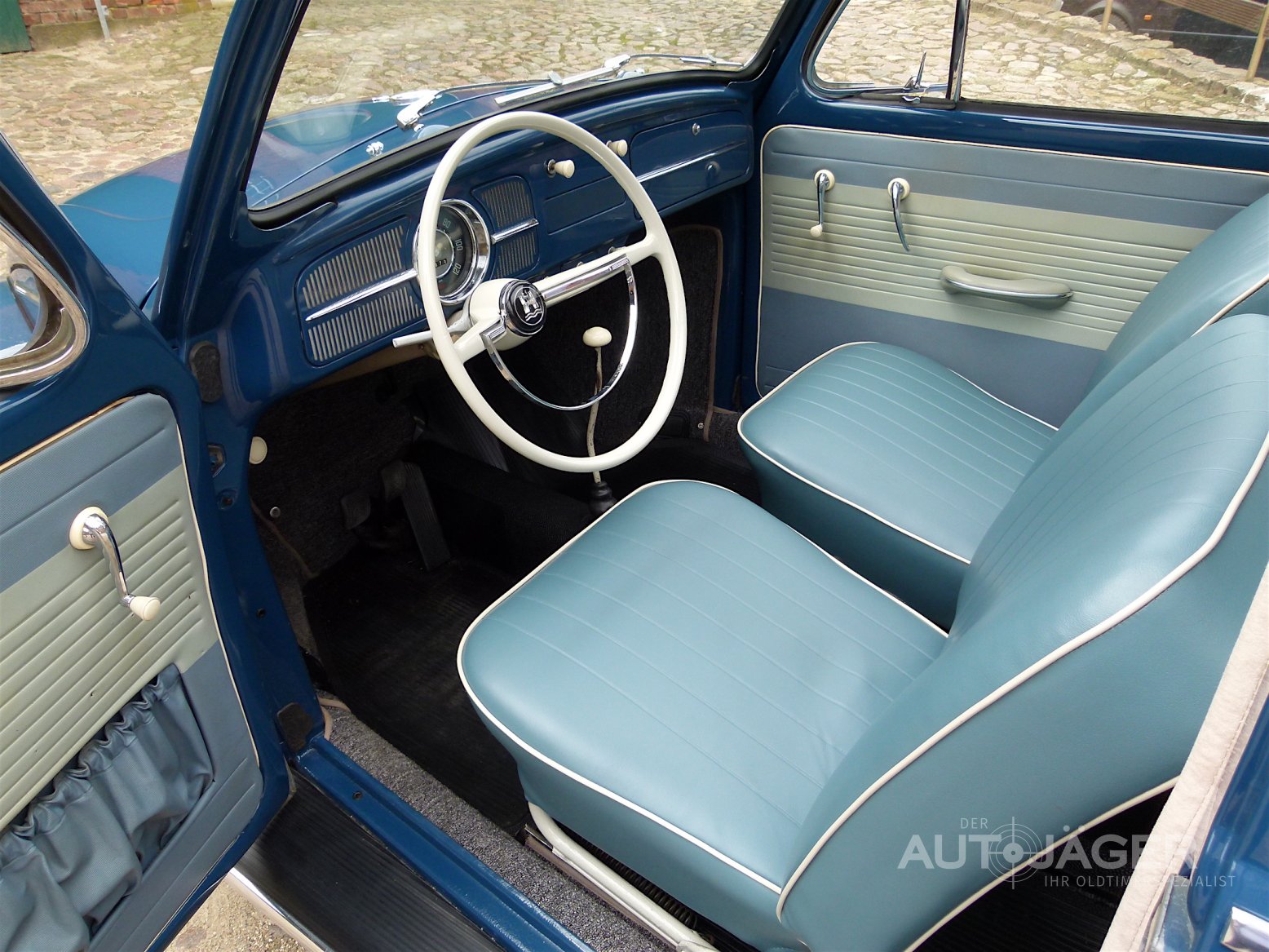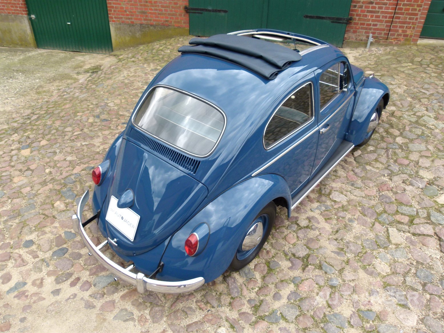 Sehr schöner Käfer mit dem original Faltschiebedach in Indigo blau. Das Auto stammt aus Familienbesitz und ist im Januar 1960 ausgeliefert worden. Durch einen Todesfall wurde der Käfer 1989 einmal auf den Sohn umgeschrieben. Man kann also von einem Ersthandfahrzeug sprechen. Das Fahrzeug befindet sich in einem sehr schönen und originalen Zustand. Vor ca. 10 Jahren wurde es einmal überarbeitet und das Faltdach, die Lackierung sowie die Innenausstattung erneuert. Alle Dichtungen am Auto wurden ebenfalls getauscht. Der Motor läuft hervorragend und das Auto fährt sich sehr gut. Für weitere Fragen oder einen Besichtigungstermin rufen Sie mich gerne an. Das Fahrzeug wird im Kundenauftrag angeboten und ist nach Terminabsprache bei Hamburg zu besichtigen. Irrtümer und Zwischenverkauf vorbehalten. Diese Fahrzeugbeschreibung gilt nicht als zugesicherte Eigenschaft. Achtung: Standort aller Fahrzeuge an der Autobahn 1, Ausfahrt Bad Oldesloe. Terminabsprache erforderlich.